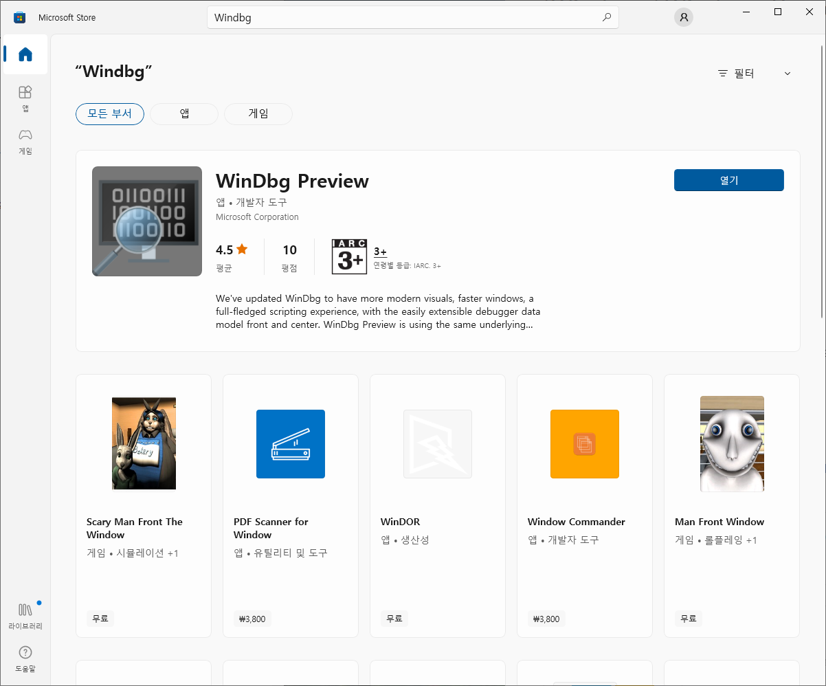 WinDbg Preview는 Microsoft Store에서 "Windbg" 키워드로 검색하면 바로 다운로드 받을 수 있다.