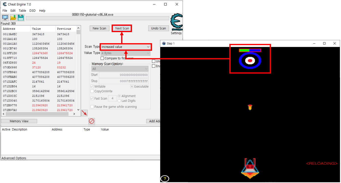 리로드를 할 때에는 체력이 증가하니 Increased value로 Scan Type을 바꾸어 스캔한다. 이런식으로 스캔을 계속하다 보면