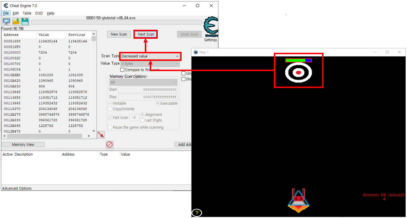 Cheat Engine Tutorial Game까지 왔다면 어느 정도 수준의 지식은 가지고 있어야만 한다. 접근 방법 또는 스캔 방법 정도는 머릿속으로 혼자서 구상할 수 있을 정도는 되어야 한다. Tutorial Game에서 마저 풀이 과정을 세세하게 적을 수는 없으니 간단하게 줄이도록 하겠다.