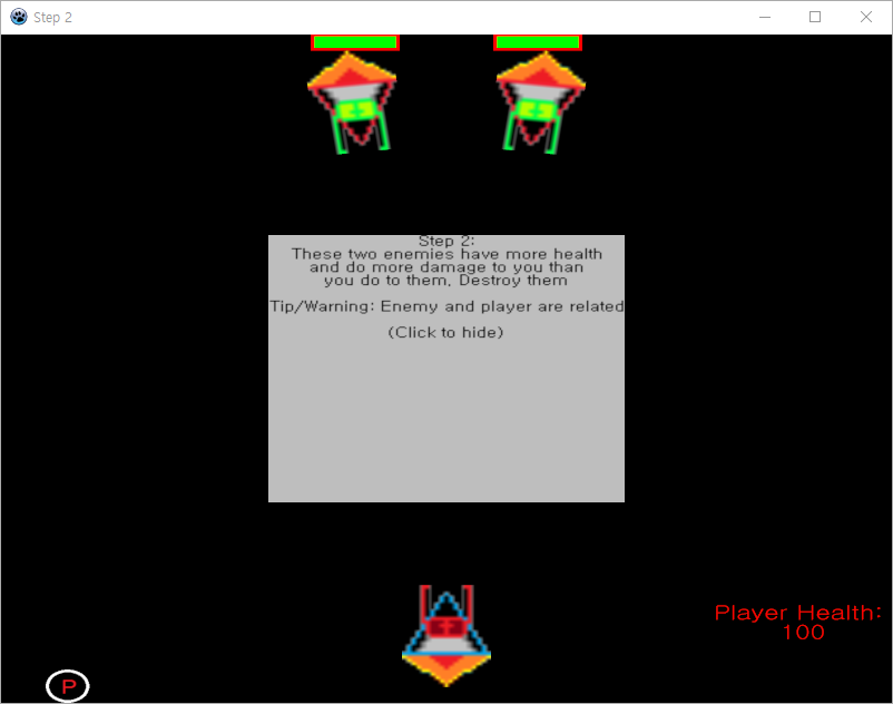 Step 2는 좀 불합리한 게임이다. 클리어 조건은 상대편 2명을 죽이면 된다. 다만 내 체력해 비해 상대방의 체력이 엄청 높고 공격력 조차도 차이가 심하다. 또 상대방 타게팅은 플레이어 고정이다. 이 조건에서 클리어를 하면 된다.