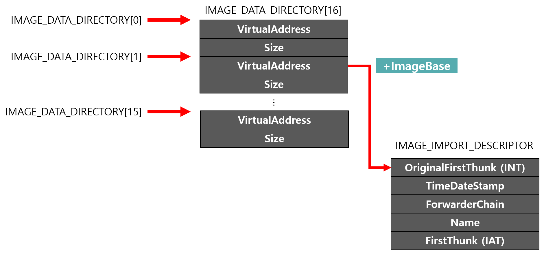 IMAGE_IMPORT_DESCRIPTOR *IMPORT = ImageBase + NT->OptionalHeader.DataDirectory[IMAGE_DIRECTORY_ENTRY_IMPORT].VirtualAddress;