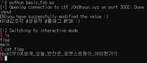 [HackCTF] Pwnable : Basic_FSB 본문