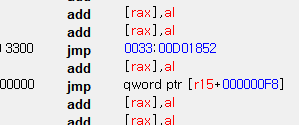jmp far 0033:XXXXXXXX 는 아래에 있는 jmp qword ptr ds:[r15+0xF8]으로 이동하게 된다.